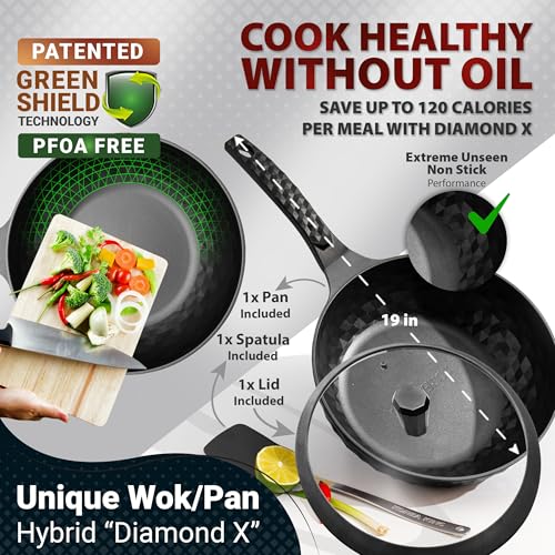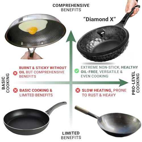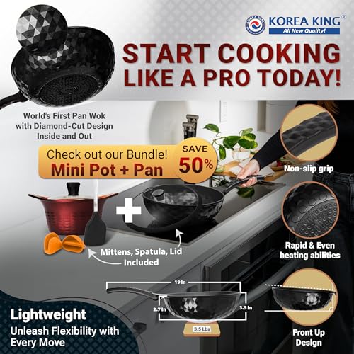 🔄 𝗨𝗟𝗧𝗜𝗠𝗔𝗧𝗘 𝗩𝗘𝗥𝗦𝗔𝗧𝗜𝗟𝗜𝗧𝗬: As much as 3.5 inches deep for stir-frying, flat backside for pan-frying. Diamond form ensures even & speedy heating. Lock in juices and flavors!