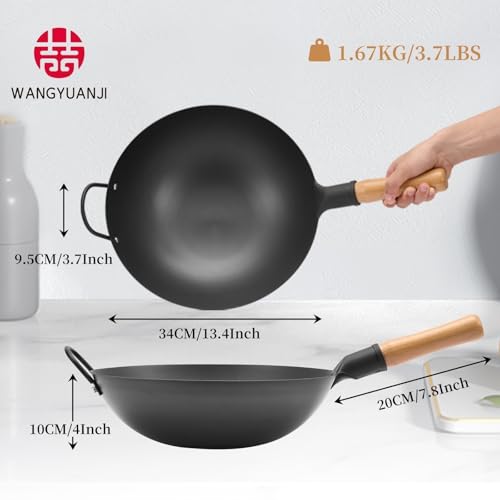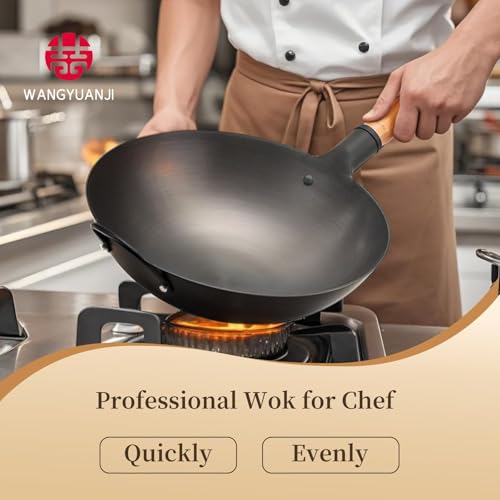·CRAFTSMANSHIP:WANGYUANJI has a heritage of 400 years of wok making expertise,and this carbon metal wok is crafted to be non-stick and no dangerous coatings for wholesome cooking and reliable high quality.